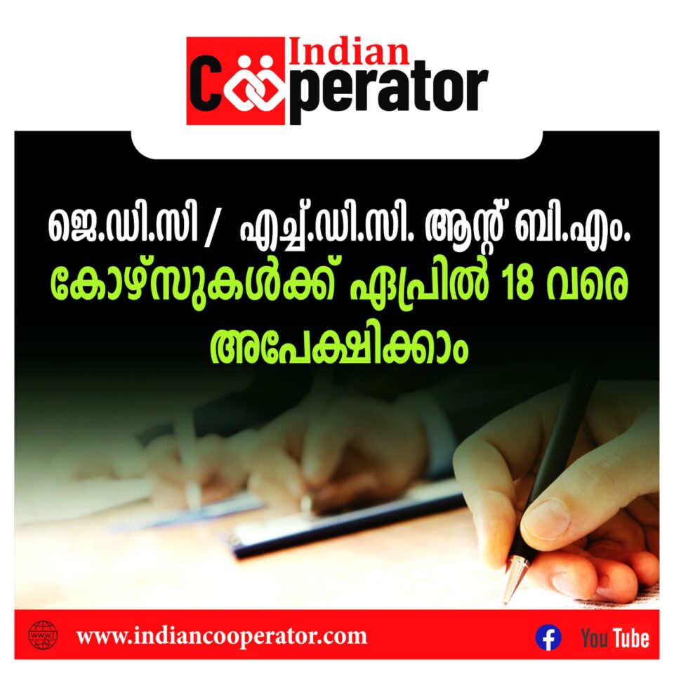 സംസ്ഥാന സഹകരണയൂണിയന് നടത്തുന്ന ജെ.ഡി.സി / എച്ച്.ഡി.സി. ആന്റ് ബി.എം. കോഴ്സുകള്ക്ക് ഓണ്ലൈന്വഴി ഏപ്രില് പതിനെട്ടിനു വൈകിട്ട് അഞ്ചു മണിവരെ അപേക്ഷിക്കാം. വിലാസം: www.scu.kerala.gov.in. ഈ കോഴ്സുകള്ക്കു കേരളസര്ക്കാരിന്റെ അംഗീകാരമുണ്ട്. സഹകരണവകുപ്പിലെയും സഹകരണസ്ഥാപനങ്ങളിലെയും നിയമനങ്ങള്ക്ക് ഒരു അവശ്യയോഗ്യതയായി ഈ ഡിപ്ലോമകള് സര്ക്കാര് അംഗീകരിച്ചിട്ടുണ്ട്. 2026 ജൂണ് ഒന്നുമുതല് 2027 മാര്ച്ച് 31 വരെയാണു ജെ.ഡി.സി. കോഴ്സിന്റെ കാലയളവ്. ഇതില് 15 ദിവസംവീതം രണ്ടു തവണ പ്രായോഗികപരിശീലനമായിരിക്കും.