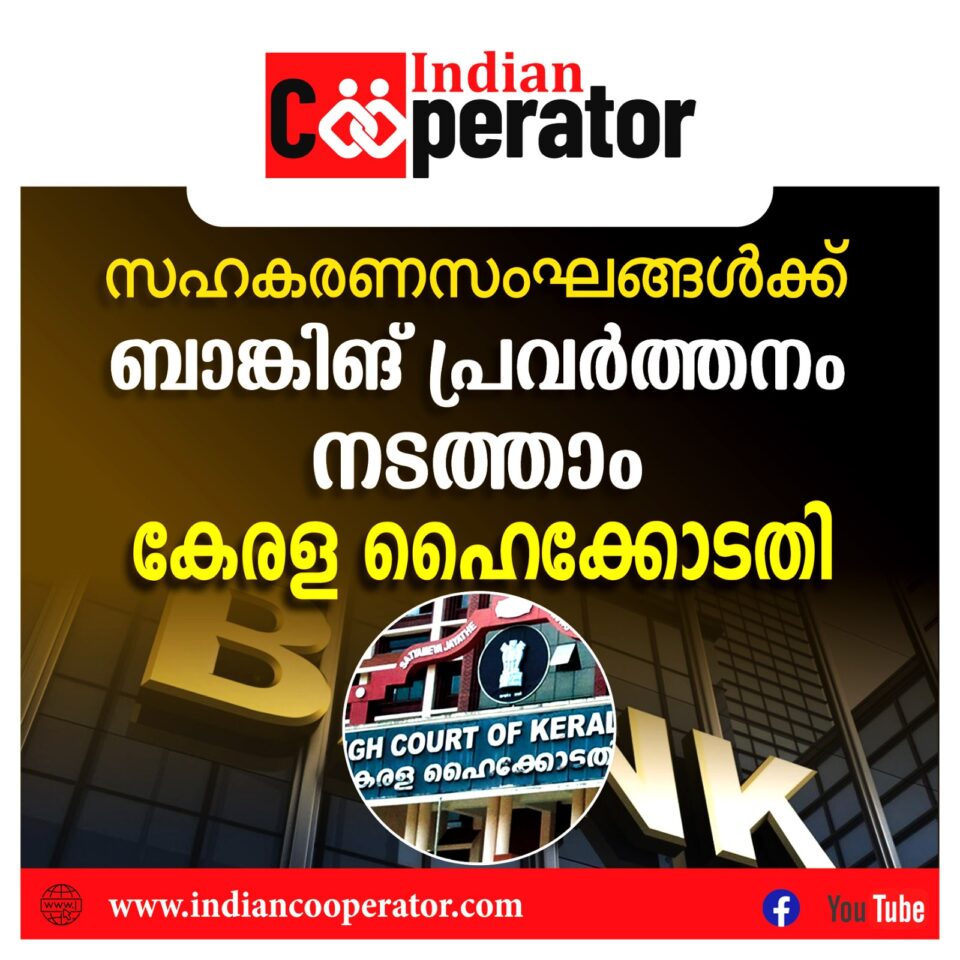 സഹകരണസംഘങ്ങള്ക്കു ബാങ്കിങ്പ്രവര്ത്തനം നടത്താമെന്നു കേരള ഹൈക്കോടതി ഡിവിഷന്ബെഞ്ച് വിധിച്ചു. 1969 ലെ കേരള സംസ്ഥാന സഹകരണസംഘം നിയമമുള്പ്പെടെയുള്ള സംസ്ഥാന സഹകരണബാങ്കിങ് നിയമങ്ങളുടെയും 1984 ലെ കേരള സംസ്ഥാന സഹകരണ കാര്ഷികവികസന ബാങ്ക് നിയമത്തിന്റെയും ഭരണഘടനാസാധുത ചോദ്യംചെയ്തുകൊണ്ട് സമര്പ്പിച്ച റിട്ട് അപ്പീല് തള്ളിക്കൊണ്ടാണു ജസ്റ്റിസുമാരായ എന്. നഗരേഷ്, ജോണ്സണ് ജോണ് എന്നിവരടങ്ങിയ ഡിവിഷന് ബെഞ്ച് ഈ സുപ്രധാനവിധി പുറപ്പെടുവിച്ചത്. സഹകരണസംഘങ്ങളെ ബാങ്കിങ്പ്രവര്ത്തനങ്ങള് നടത്താന് സഹായിക്കുന്ന ഈ നിയമങ്ങള് ഭരണഘടനാവിരുദ്ധവും നിയമവിരുദ്ധവുമായി പ്രഖ്യാപിക്കണമെന്നായിരുന്നു ഹര്ജിക്കാരന്റെ ആവശ്യം. ബാങ്കിങ്പ്രവര്ത്തനം യൂണിയന് ലിസ്റ്റിലെ എന്ട്രി 45 ( ബാങ്കിങ് ) നു കീഴില് വരുന്ന വിഷയമാണെന്നായിരുന്നു ഹര്ജിക്കാരനായ തോമസ് എം.കെ.യുടെ വാദം. ഭരണഘടനയുടെ ഏഴാം ഷെഡ്യൂളിലെ ലിസ്റ്റ് ഒന്നില് 246-ാമതു അനുച്ഛേദത്തില് പാര്ലമെന്റിന്റെ പരിധിയില് വരുന്നതാണു ബാങ്കിങ്പ്രവര്ത്തനം എന്നും ഹര്ജിക്കാരന് വാദിക്കുകയുണ്ടായി.