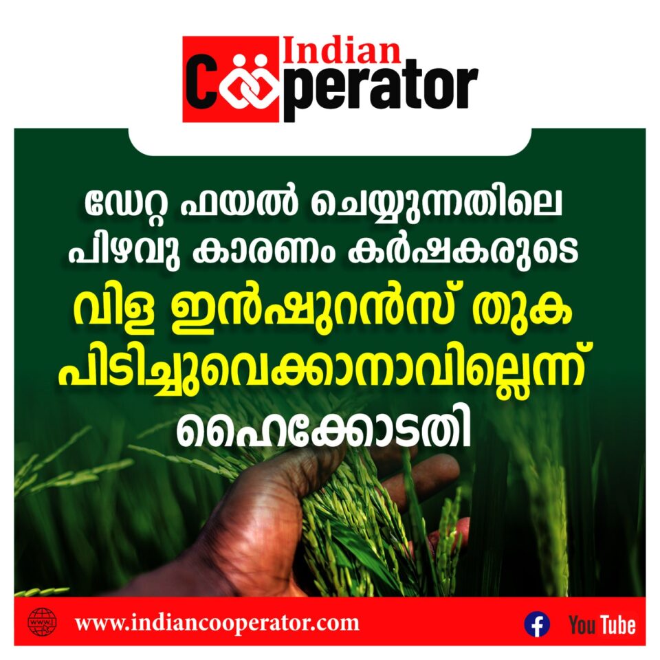 ദേശീയ വിള ഇന്ഷുറന്സ് പോര്ട്ടലില് ( NCIP ) ഡേറ്റ ഫയല്ചെയ്യുമ്പോള് സഹകരണസംഘത്തിനു പറ്റിയ പിഴവിന്റെ പേരില് കര്ഷകര്ക്ക് ഇന്ഷുറന്സ്തുക നിഷേധിക്കരുതെന്നു രാജസ്ഥാന് ഹൈക്കോടതി ഉത്തരവിട്ടു. നാഗോര് ജില്ലാ കേന്ദ്ര സഹകരണബാങ്കിനാണു കോടതി ഈ നിര്ദേശം നല്കിയത്. ഡേറ്റ ഫയല് ചെയ്യുന്നതില് കര്ഷകര്ക്കു പങ്കോ നിയന്ത്രണമോ ഇല്ലെന്നു ഹൈക്കോടതി കണ്ടെത്തി.