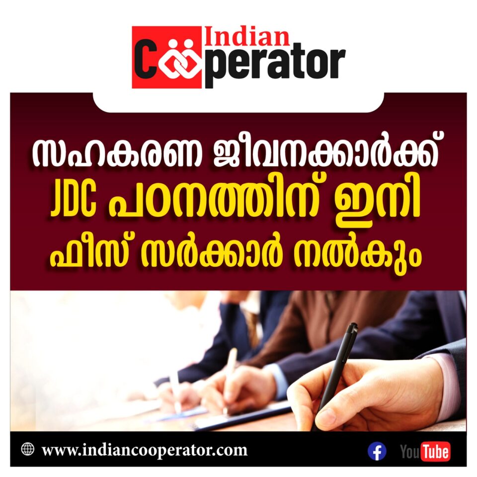സഹകരണമന്ത്രിയുടെ അധ്യക്ഷതയില് ചേര്ന്ന പ്രൊഫഷണല് എഡ്യുക്കേഷന്ഫണ്ട് യോഗത്തിലാണു സഹകരണജീവനക്കാരുടെ ട്യൂഷന്ഫീസും പരീക്ഷാഫീസും സര്ക്കാര് അടയ്ക്കുമെന്ന തീരുമാനമെടുത്തത്. നിലവില് പ്രതിവര്ഷം 400 പേരാണു ജെ.ഡി.സി. പരിശീലനത്തിനെത്തുന്നത്.