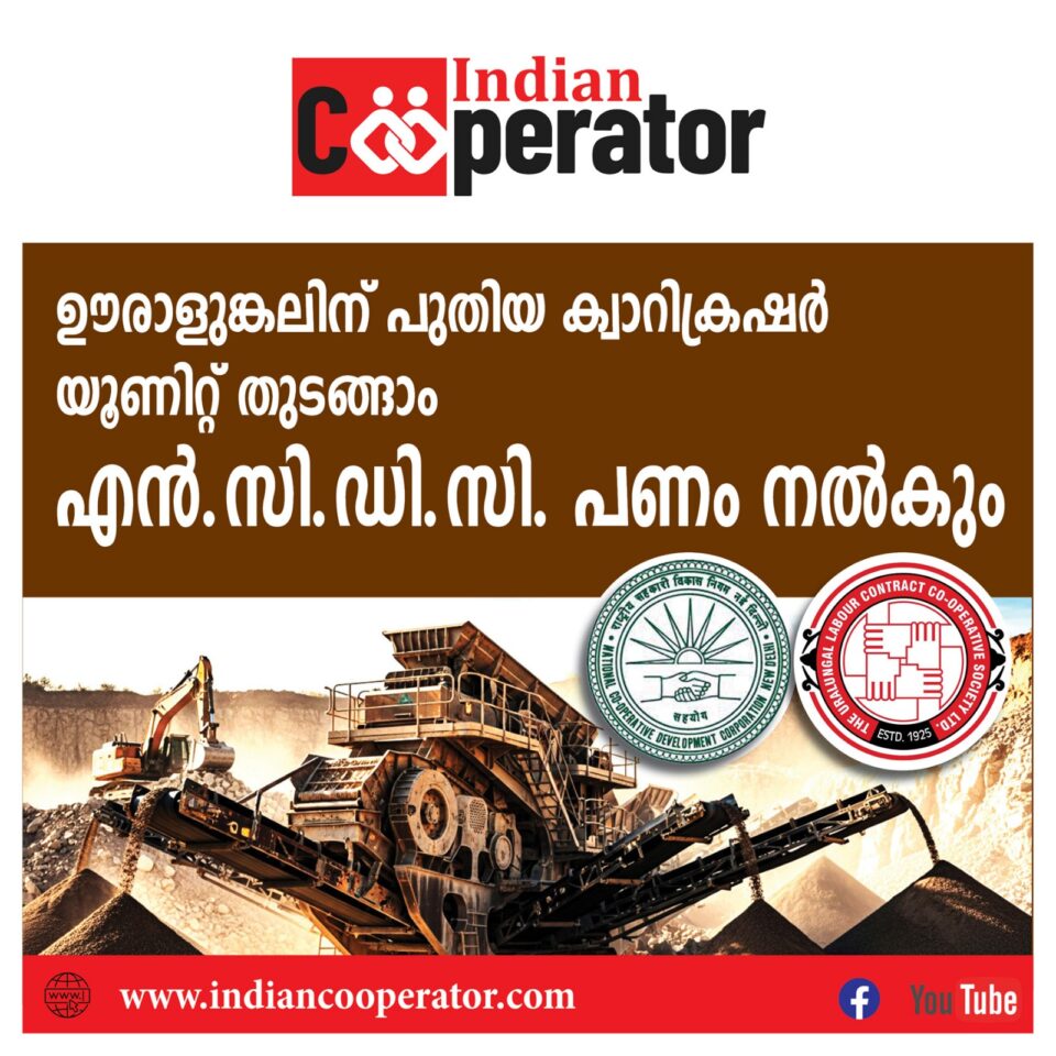 നിര്മ്മാണമേഖലയില് കൂടുതല് കാര്യക്ഷമമായി ഇടപെടുന്നതിന് ഊരാളുങ്കല് ലേബര് സൊസൈറ്റിക്ക് എന്.സി.ഡി.സി.യുടെ സാമ്പത്തിക സഹായം. പുതിയ ക്വാറി-ക്രഷര് യൂണിറ്റ് വാങ്ങുന്നതിനായി 73.85 കോടിരൂപയാണ് വേണ്ടത്. ഇതില് 66.46 കോടിരൂപയാണ് എന്.സി.ഡി.സി. അനുവദിക്കുന്നത്. ഇതിനായി സഹകരണ സംഘം രജിസ്ട്രാര് സര്ക്കാരിന് കത്ത് നല്കിയിരുന്നത്. അഞ്ചുകോടിരൂപ ഓഹരിയായും 61.46 കോടിരൂപ വായ്പയായുമാണ് അനുവദിക്കുക.