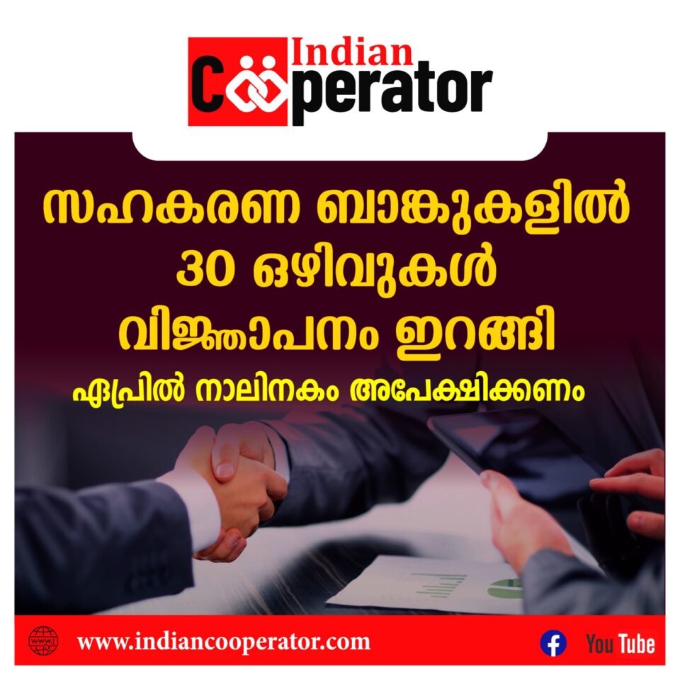 സഹകരണസംഘങ്ങളിലും ബാങ്കുകളിലും ഒഴിവുള്ള സെക്രട്ടറി, അസി. സെക്രട്ടറി, ചീഫ് അക്കൗണ്ടന്റ്, ജൂനിയര് ക്ലാര്ക്ക് തസ്തികകളിലേക്കു തിരഞ്ഞെടുക്കപ്പെടുന്നതിനു യോഗ്യതയുള്ള ഉദ്യോഗാര്ഥികളില്നിന്നു സഹകരണസര്വീസ് പരീക്ഷാ ബോര്ഡ് അപേക്ഷ ക്ഷണിച്ചു. നേരിട്ടുള്ള നിയമനമാണ്. പരീക്ഷാബോര്ഡ് നടത്തുന്ന ഓണ്ലൈന് പരീക്ഷയുടെയും ബന്ധപ്പെട്ട സ്ഥാപനങ്ങള് നടത്തുന്ന അഭിമുഖത്തിന്റെയും അടിസ്ഥാനത്തില് പരീക്ഷാബോര്ഡ് തയ്യാറാക്കുന്ന റാങ്ക്ലിസ്റ്റ് പ്രകാരമായിരിക്കും നിയമനം. 2026 ഏപ്രില് നാലാണ് അപേക്ഷ സമര്പ്പിക്കേണ്ട അവസാനതീയതി. ആകെ 30 ഒഴിവുകളാണുള്ളത്. എല്ലാം ജനറല് വിഭാഗത്തിലാണ്. ജൂനിയര് ക്ലാര്ക്ക് തസ്തികയില് രണ്ടു ഭിന്നശേഷിക്കാര്ക്ക് അവസരമുണ്ട്. ഓണ്ലൈനില് മാത്രമേ അപേക്ഷിക്കാവൂ.
